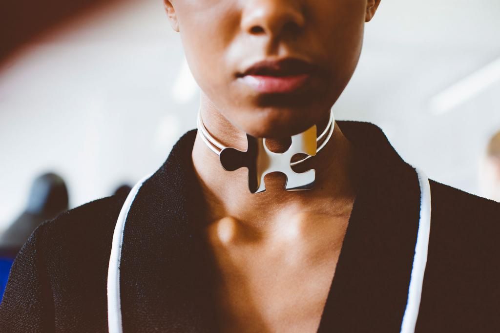 I'm always looking for unique, quirky pieces. Not necessarily showy statement pieces, but a necklace or t-shirt or bag or whatever that just makes you go, "That's so rad, where did you get that?" And this puzzle piece choker from J.W. Anderson's Spring 2015 collection is SO. FUCKING. RAD.